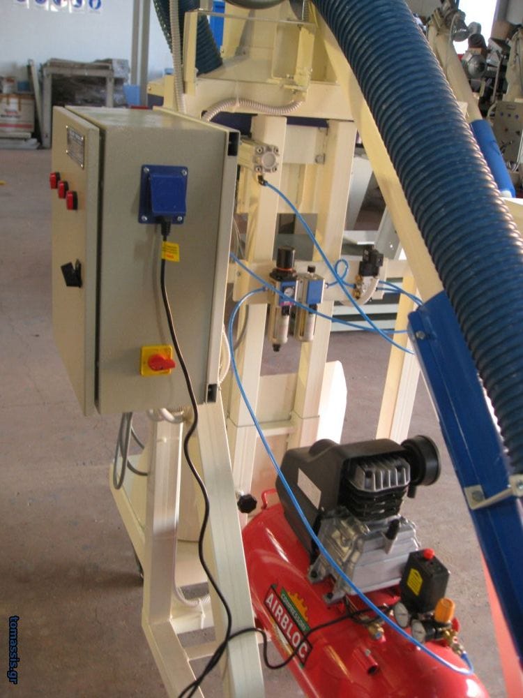 • Διαθέτει κομπρεσέρ αέρος για τη λειτουργία των πνευματικών σιαγόνων καθώς και σύστημα απομάκρυνσης της σκόνης κατά τη διάρκεια ενσάκισης.